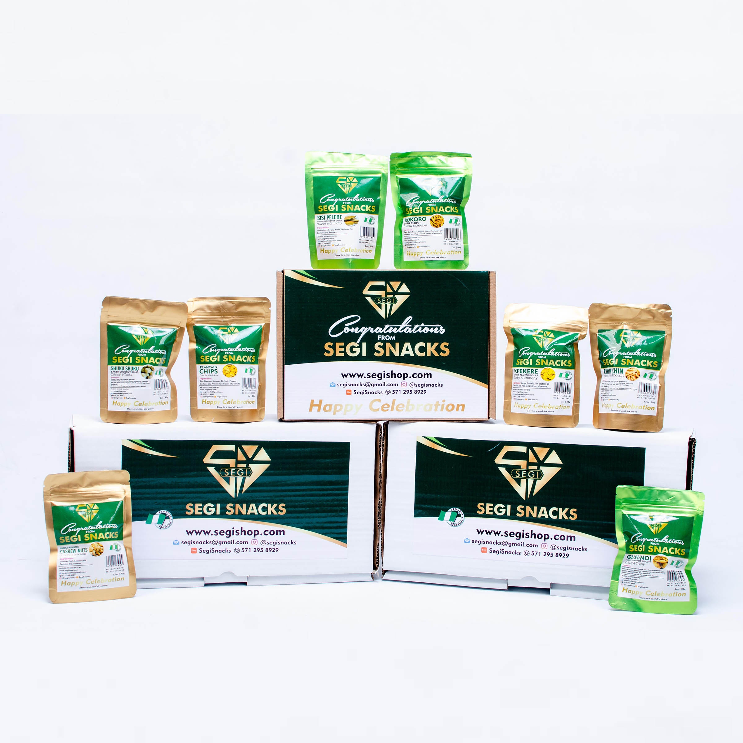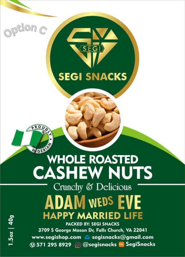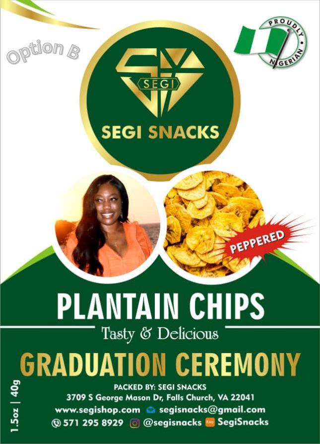 Customized Event Label – Option A = Custom photos (1 large, Up to 3 small) and standard Segi Snack product image (1 small) center the package. Max 20 custom text characters.