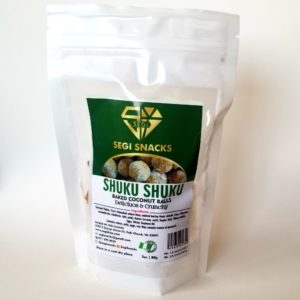 1 x A Coconut Snack [Choice of: Coconut Chips (40g), Shuku Shuku (Coconut Balls) (80g), Gurundi (Coconut Biscuits) (80g)] OR 3 X Kuli Kuli (Spicy Groundnut Chips) (80g)